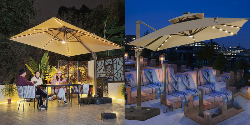 Là sản phẩm kết hợp giữa ô dù che nắng truyền thống và đèn LED sử dụng năng lượng mặt trời. Đây là giải pháp lý tưởng cho các nhà hàng, quán ăn kinh doanh ngoài trời mang lại sự tiện nghi và thẩm mỹ cao.