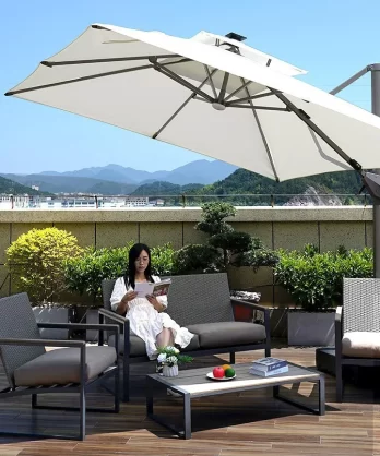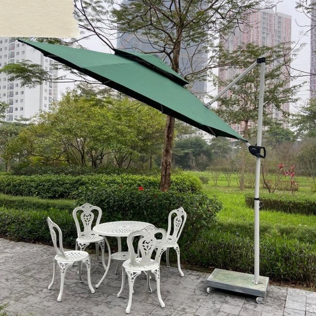 Kiểu dáng hiện đại, linh hoạt điều chỉnh hướng che, phù hợp cho nhiều vị trí trong sân vườn, đặc biệt là khu vực bàn ăn hoặc hồ bơi, tạo sự sang trọng và đẳng cấp cho không gian.