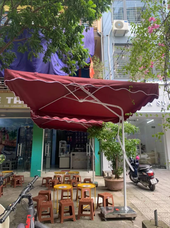 – Kết cấu dù lệch tâm vuông có 2 tầng thông gió. Có đòn bẩy trợ lực nâng hạ dễ dàng.